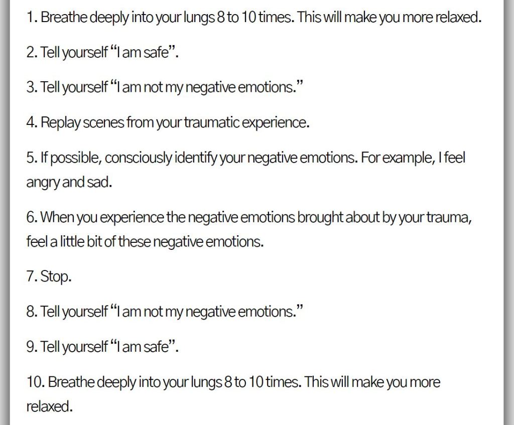 Whenever you are ready (maybe another day, week or month), repeat this method and feel a little more of your negative emotions. You are on your own schedule. You heal at your own pace. This will allow you to gradually release some of the traumatic energy trapped in your body.